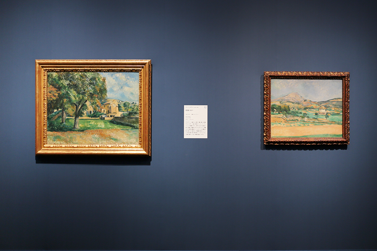 (左から)《庭園の木々》ポール・セザンヌ 1885-87年 / 《サント=ヴィクトワール山の平野、ヴァルクロからの眺め》ポール・セザンヌ 1882-85年