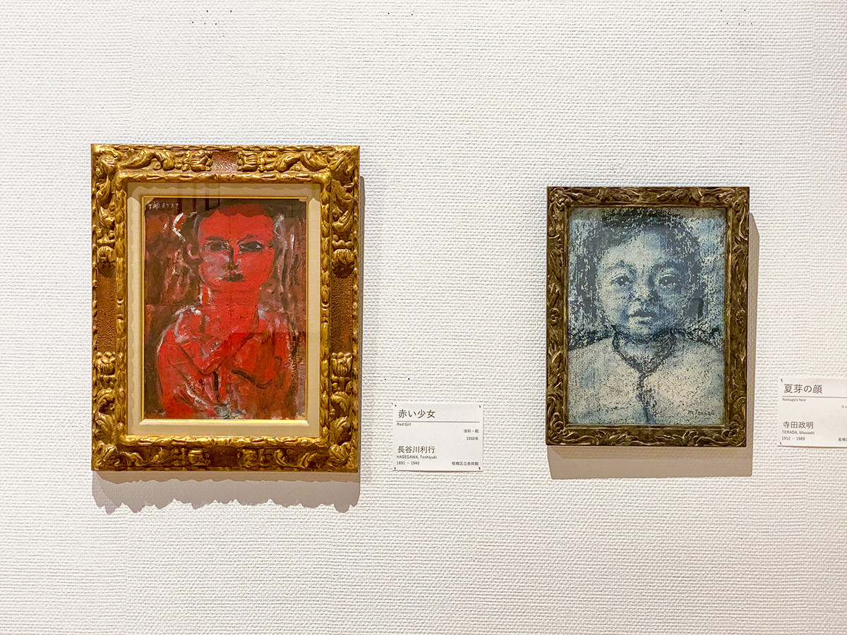 (左から)長谷川利行《赤い少女》1932年 / 寺田政明《夏芽の顔》