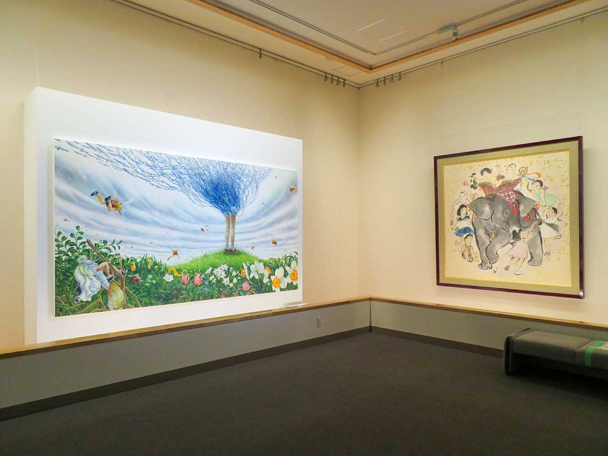 コラボレーション企画展「川端龍子VS高橋龍太郎コレクション―会田誠・鴻池朋子・天明屋尚・山口晃―」入り口からの会場風景。