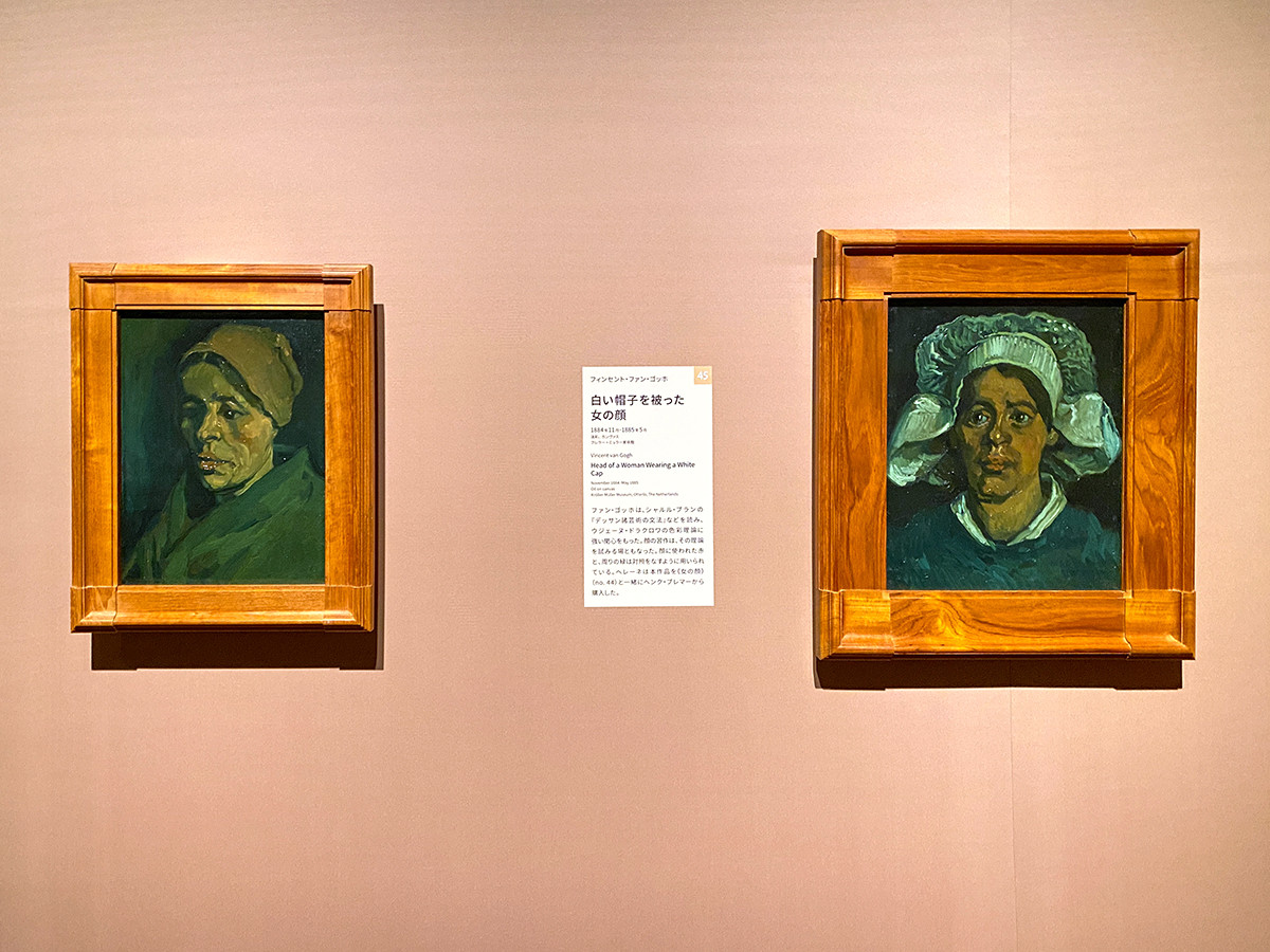 フィンセント・ファン・ゴッホ《女の顔》1884年11月-1985年1月 / フィンセント・ファン・ゴッホ《白い帽子を被った女の顔》1884年11月-1985年5月 ともにクレラー=ミュラー美術館
