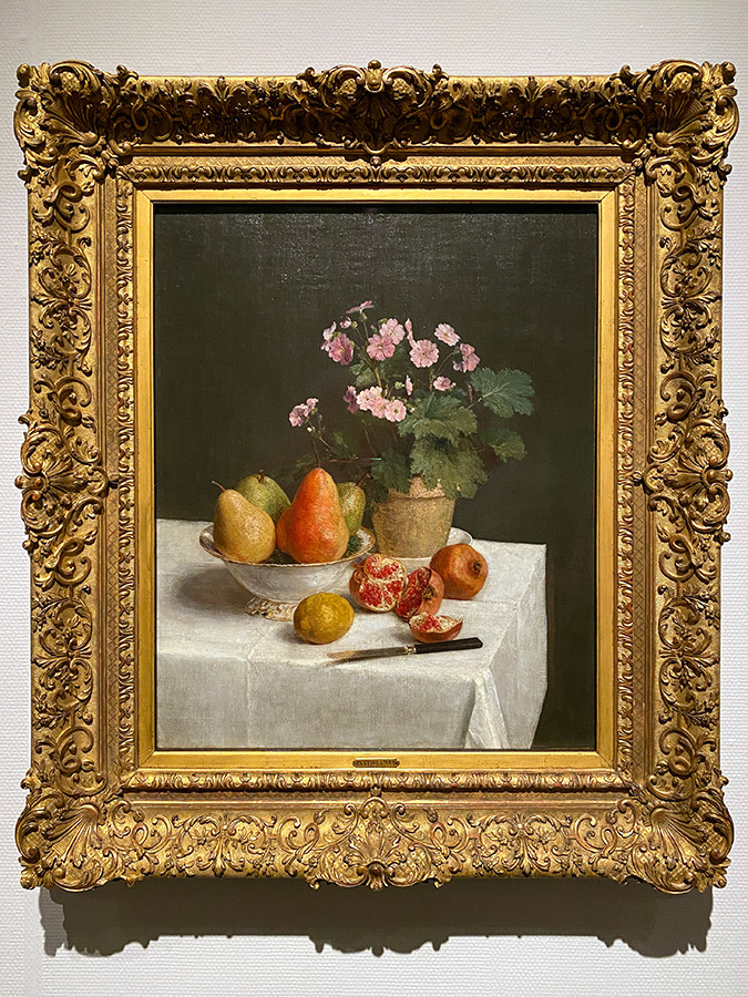 アンリ・ファンタン=ラトゥール《静物(プリムローズ、洋梨、ザクロ)》1866年 クレラー=ミュラー美術館