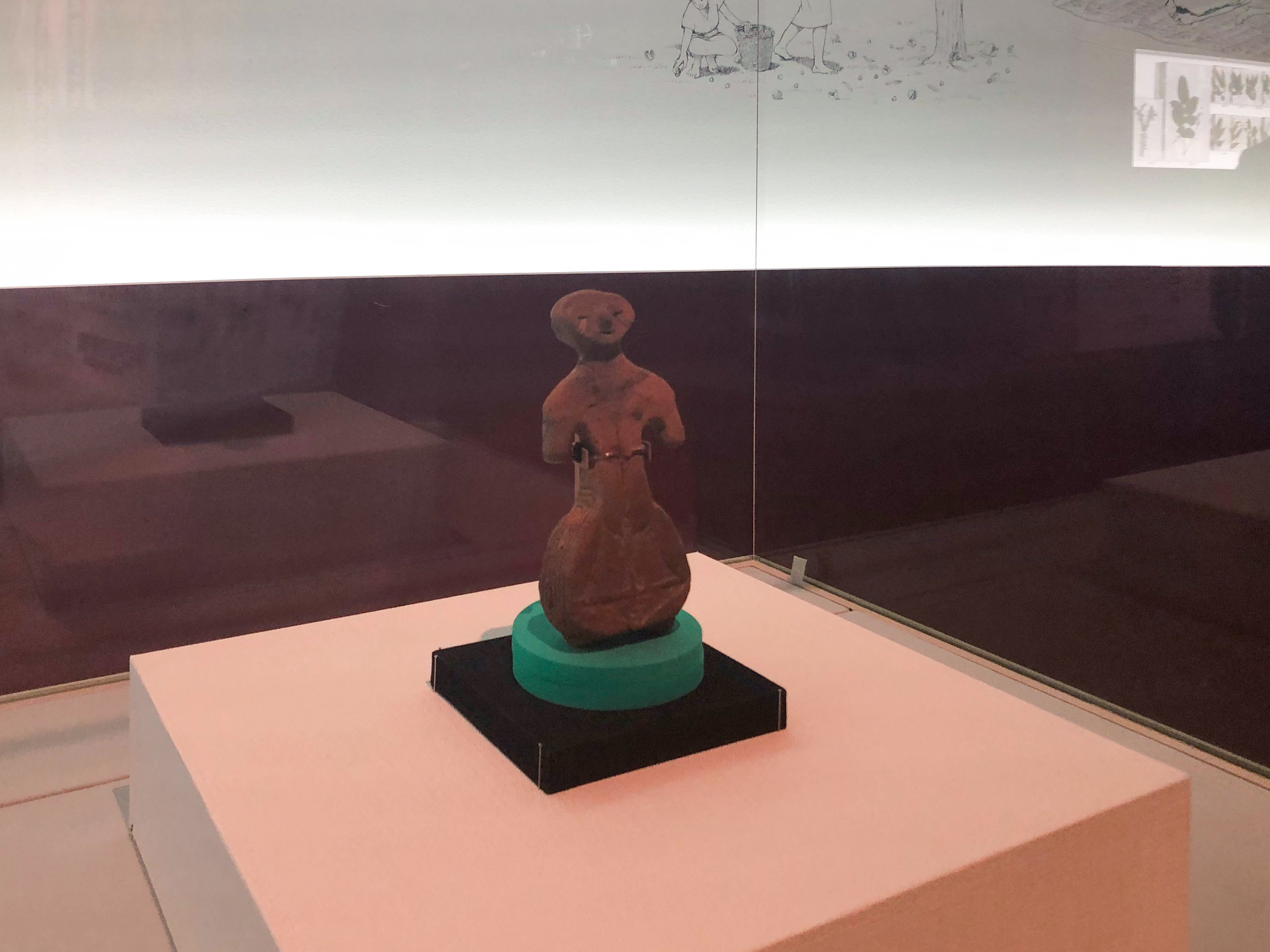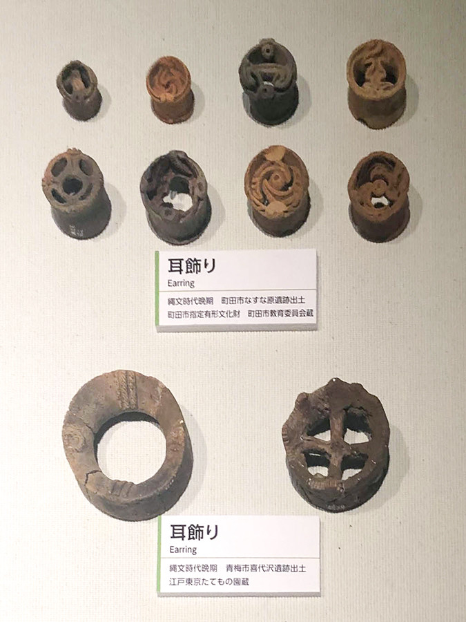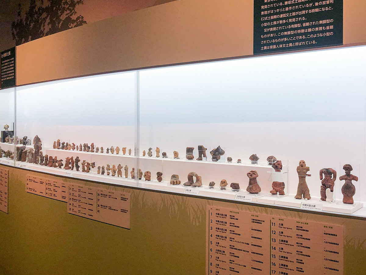 入口で出迎えてくれるのは、縄文時代中期前半の大型土偶「多摩ニュータウンのビーナス」。 光沢を帯びた表面と、目の下の2本の沈線などが特徴の、約5,380~5,320年前に作られたとされる土偶です。2009年には、イギリス・大英博物館での「土偶 The Power of DOGU」でも展示された逸品です。