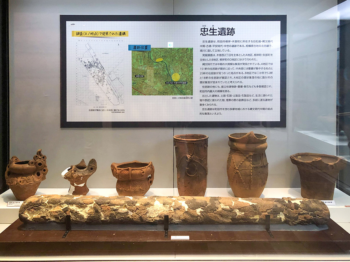 遺跡からは、島や海岸、山地など様々な地形に応じて異なる生活をしていたことを感じることができます。縄文中期の拠点的な集落である町田市の忠生遺跡や青梅市の駒木野遺跡では、装飾豊かな造形美を感じることができる土器が残されています。