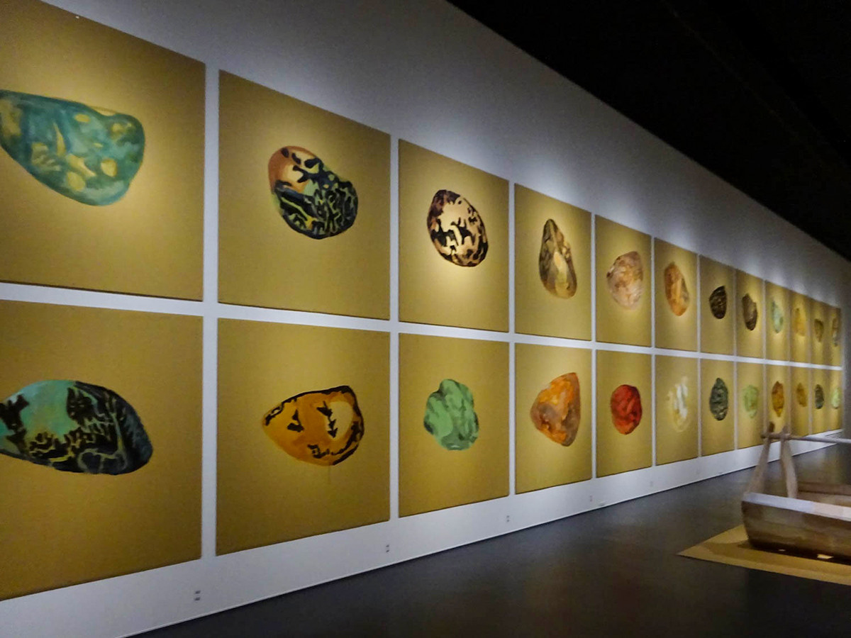 会場には、収穫された種を描いた99枚の作品がずらり。圧巻です。1つ1つ形や色が異なり個性的。一括りにしてしまう朝顔の種のイメージが変わります。そして何よりも楽しい。