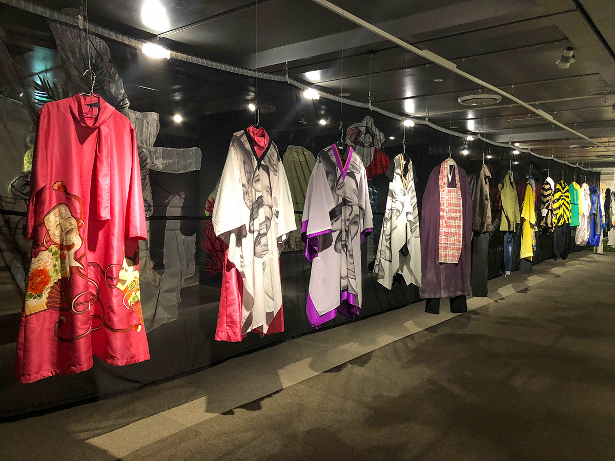 “パフォーマンスの森”に足を進めると、演劇や映画、テレビの衣装などこれまで手がけた作品が、ところ狭しと紹介されています。
