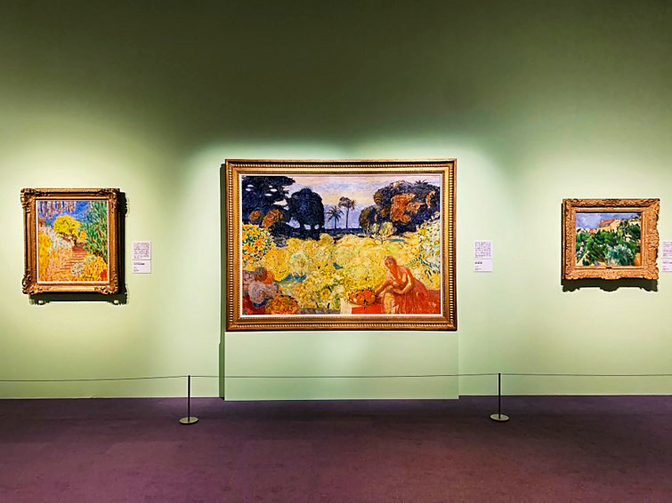ひと際大きく牧歌的な作品はボナールの「地中海の庭」。大きなカンヴァスの手前にテラスが描かれていることで、テラスに立っているかのような臨場感が得られます。ミモザの花が一面に咲く“日常”の輝きに浸ることができます。