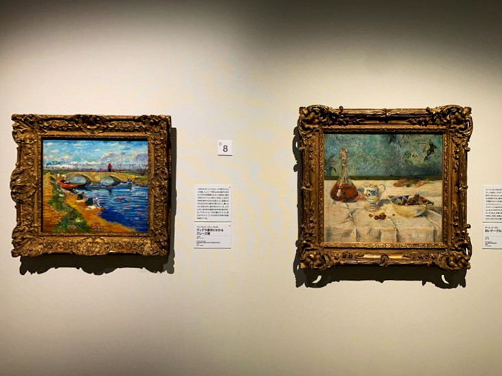 フィンセント・ファン・ゴッホ「ヴィゲラ運河にかかるグレーズ橋」(1888), ポール・ゴーガン「白いテーブルクロス」(1886)