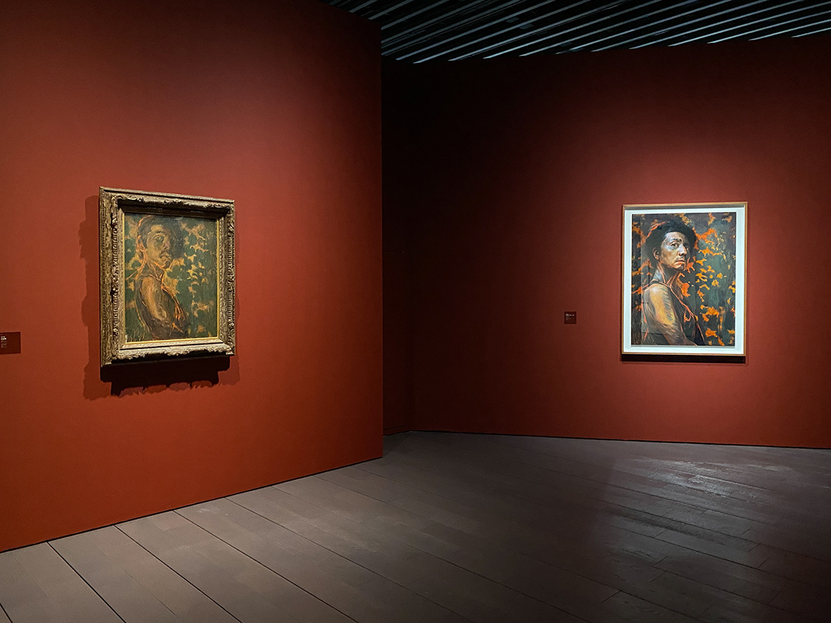 (左から)青木繁《自画像》1903年 石橋財団アーティゾン美術館蔵 / 森村泰昌《自画像/青春(Aoki)》2016/2021年 作家蔵