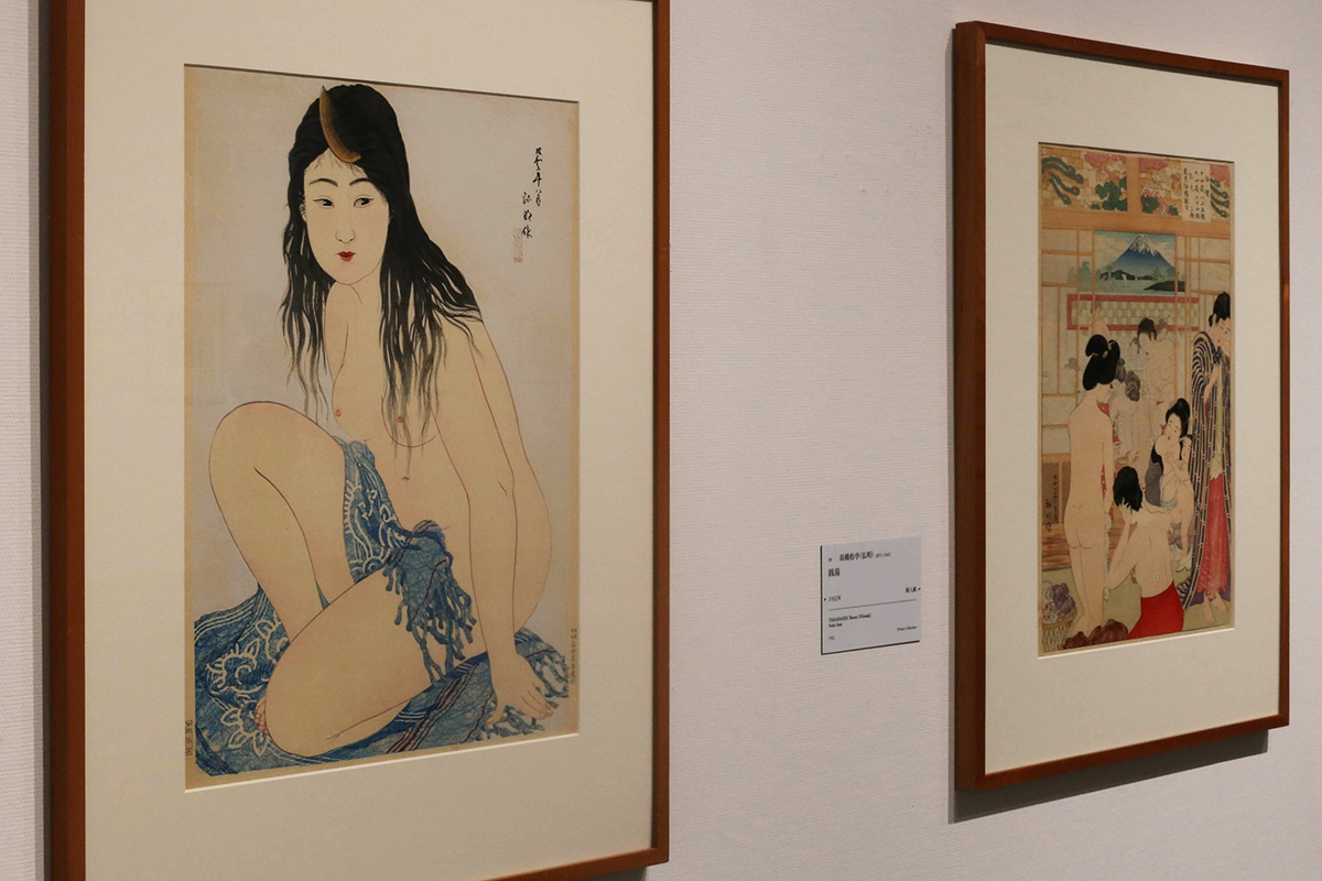 (左から)《海女》高橋松亭(弘明) 1931年 渡邊木版美画舗蔵 / 《銭湯》高橋松亭(弘明) 1932年 個人蔵