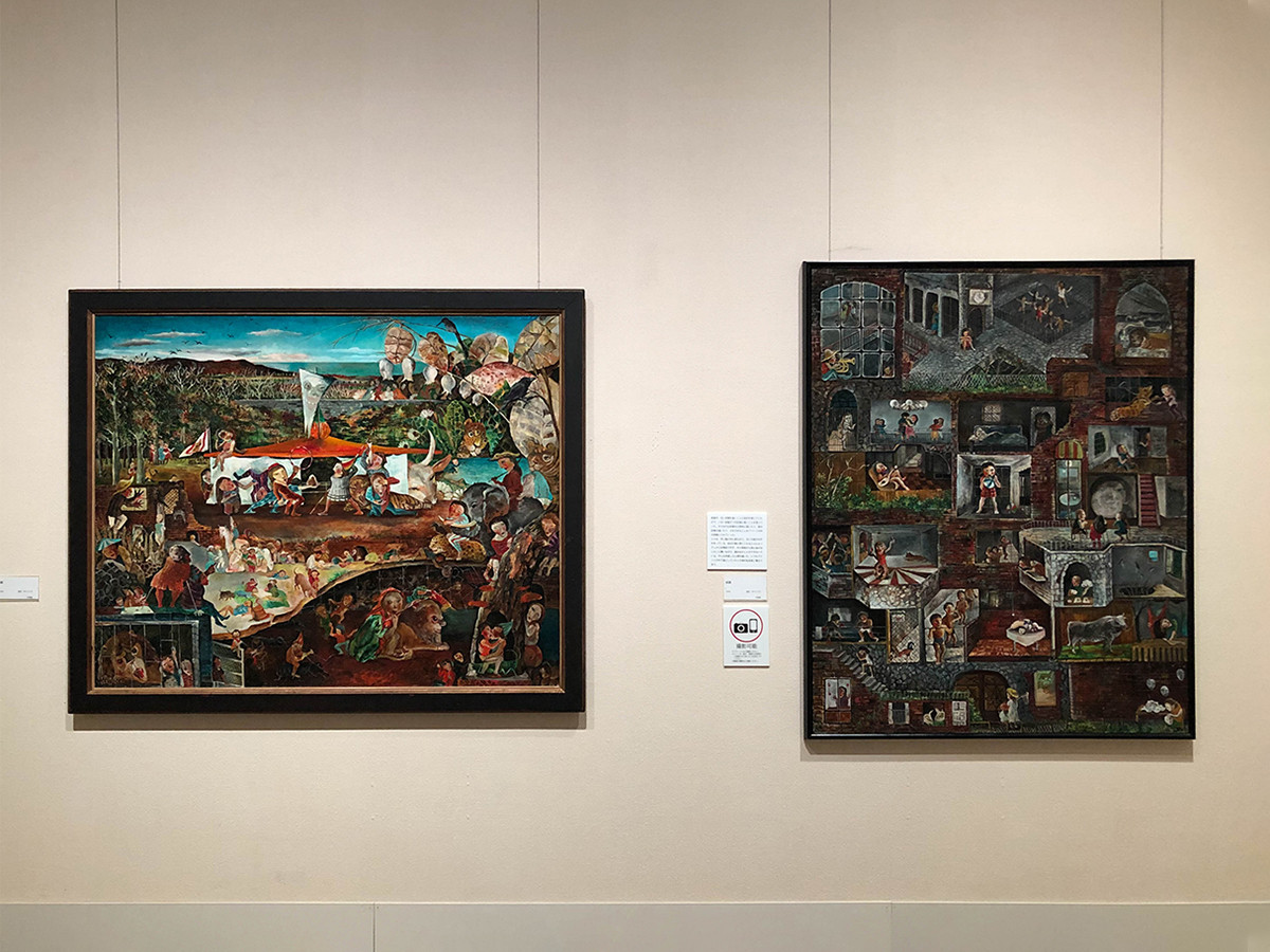 1970年代に描かれたのは「楽園シリーズ」。様々な動物と人間が描かれた童画のような作品や、アパートに住む各部屋の住民の様子を描いた作品など、生活の中には常に絵があり、制作スタイルも変化していることも分かります。