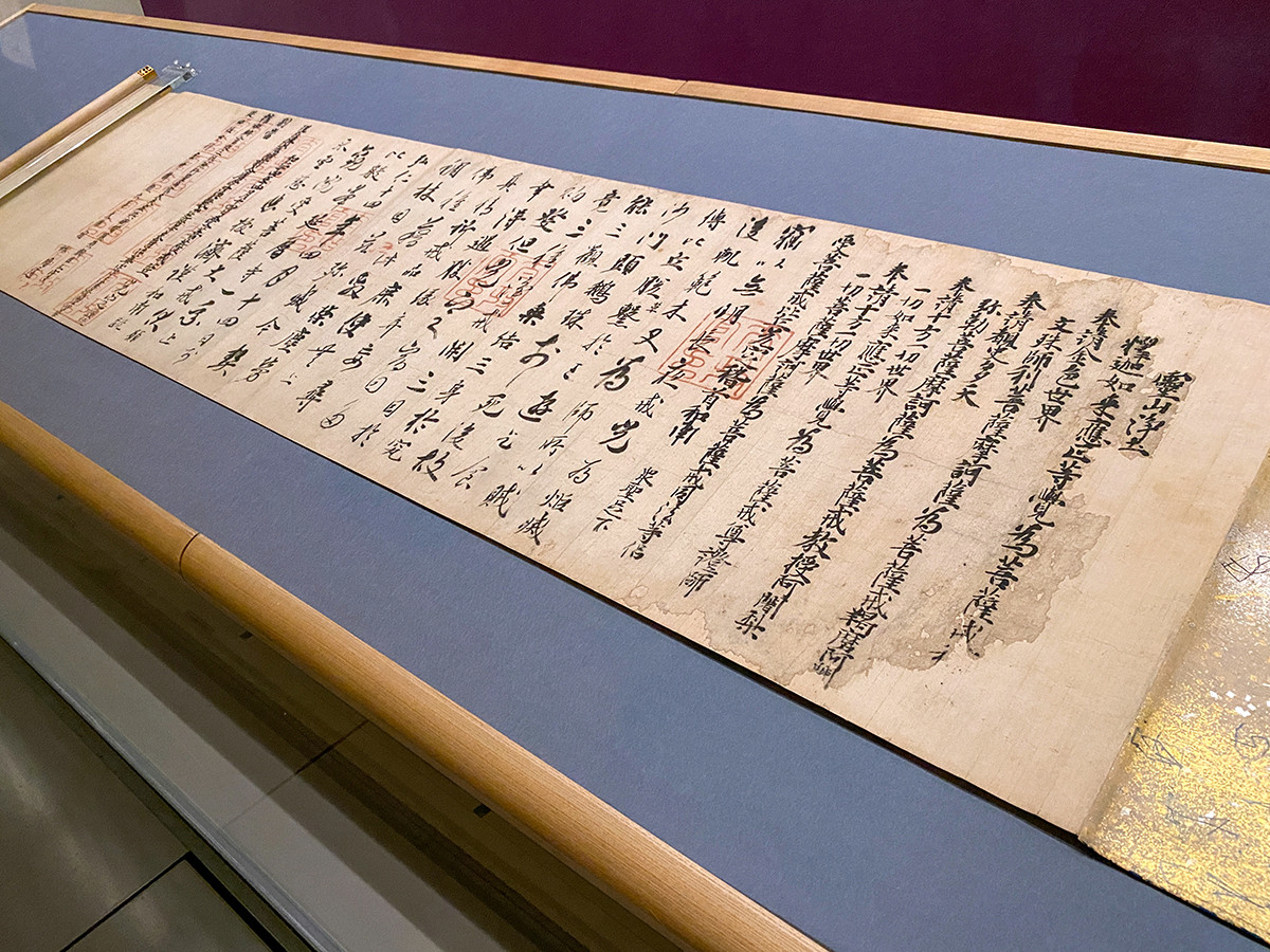 この章「最澄と天台宗の始まり ― 祖師ゆかりの名宝」では、こちらもお見逃しなく。最澄の弟子・光定が、戒(かい)を受けた僧であることを示す公的な証明書です。