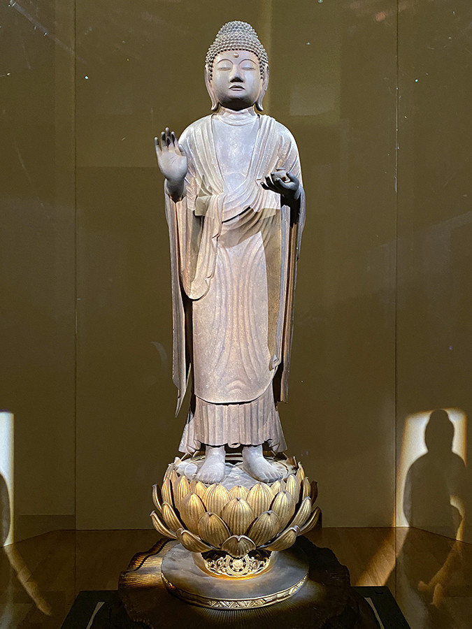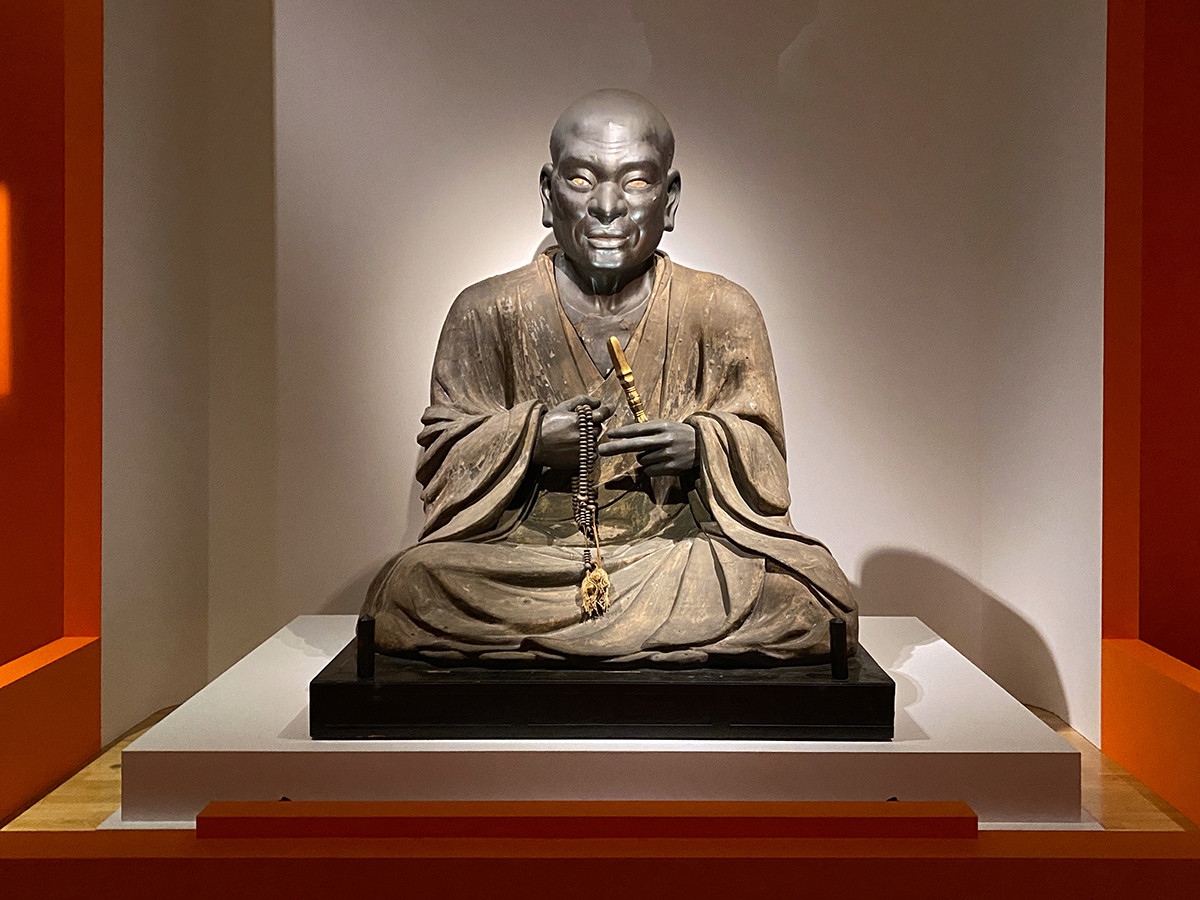 会場最後に登場するのが、像高が2メートル近くある日本最大の肖像彫刻。「厄除け大師」として篤く信仰され、50年に一度開扉される秘仏です。