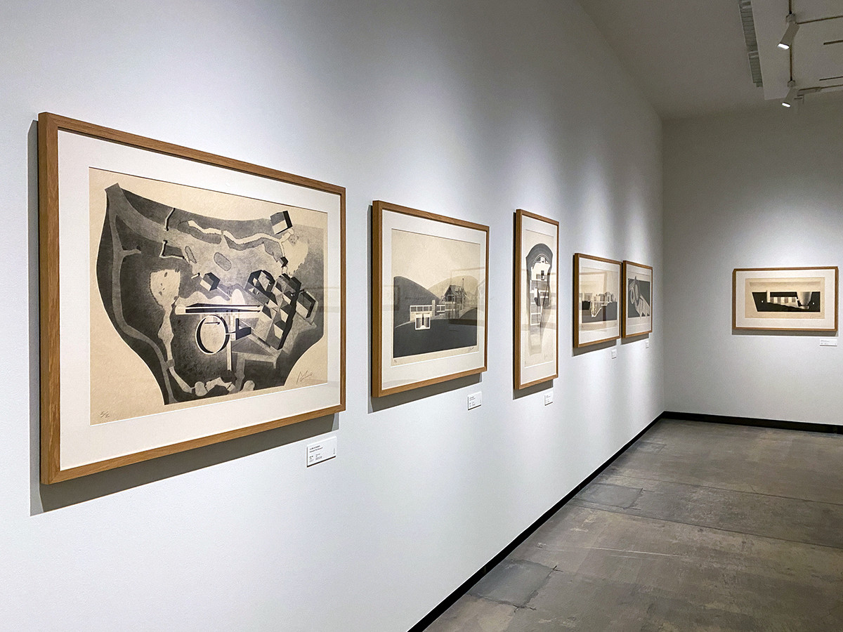 展示されているのは、初期建築作品のスケッチ、未完のプロジェクトのシルクスクリーンを含む平面作品15点です。