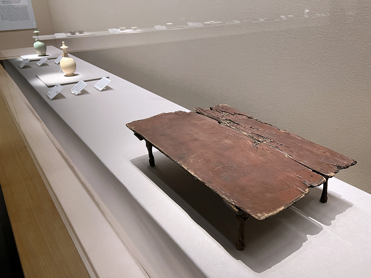 (左から)《響銅浄瓶》朝鮮・高麗時代 10世紀 根津美術館 / 《白磁浄瓶》中国・唐時代 8世紀 藤崎隆三氏寄贈 根津美術館 / 重要美術品《漆案》中国・後漢時代 永元14年(102)根津美術館