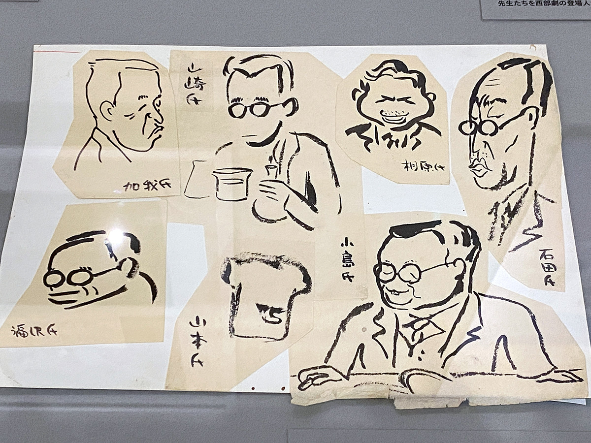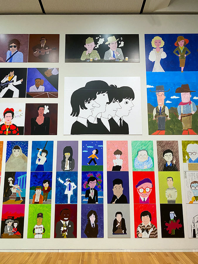 展示室に入って左側の壁面を埋め尽くす「似顔絵」。和田誠といえば似顔絵、と語られるほど、和田は多くの人の似顔絵を描いています。