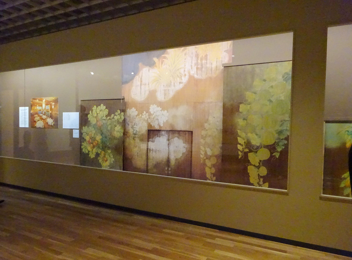 彼の仕事の中でも珍しい室内装飾、都ホテルの宴会場「稔りの間」の壁面を手掛けた仕事も紹介されています。《豊穣》という題名通り、南国の珍しいフルーツがたわわに実った様子が描かれています。華やかな空間はそこに集う人たちにどれほどの活気をもたらしただろうと想像が広がります。