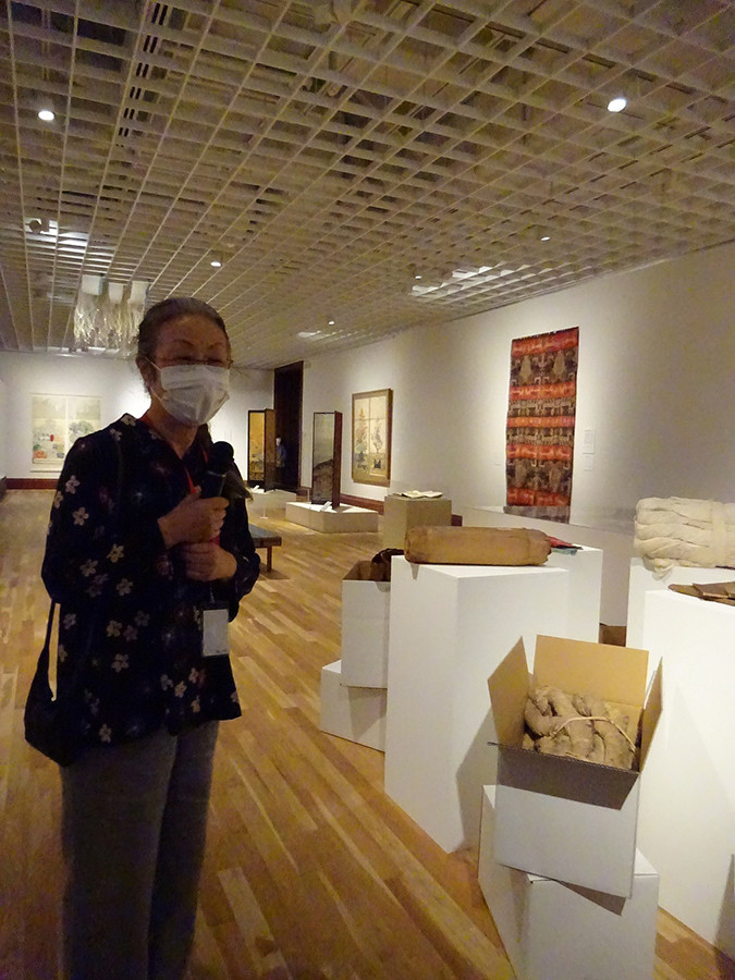 展示について説明する繊維造形作家・ひろいのぶこさん
