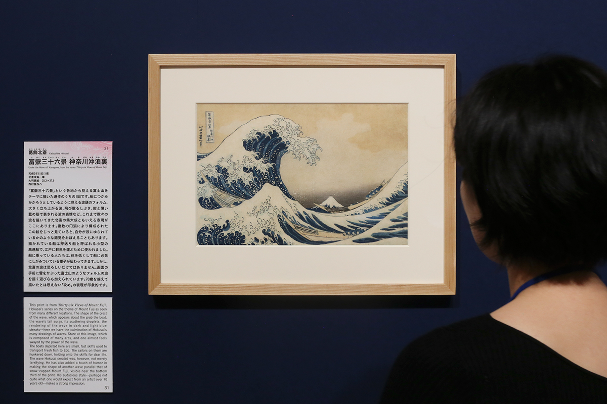 「グレートウェーブ」という愛称で、世界的な人気を誇る「冨嶽三十六景 神奈川沖浪裏」(以下‘浪裏’)。大波をストップモーションでとらえたこの作品を筆頭に、北斎は水を描いたさまざまな作品を残しています。川、滝、海と、水を描いた作品が並ぶ展覧会がすみだ北斎美術館で始まりました。