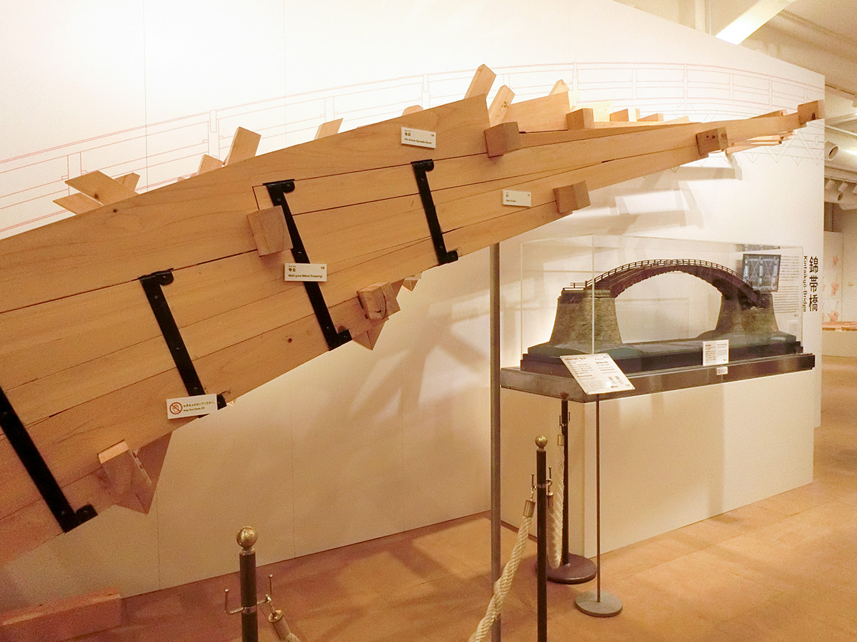 木組の巨大な構造物に錦帯橋があります。アーチ構造は石造りによく見られますが、柱のない長さ36mの木製アーチ型は世界に類をみません。1673年、日本では木でチャレンジしました。
