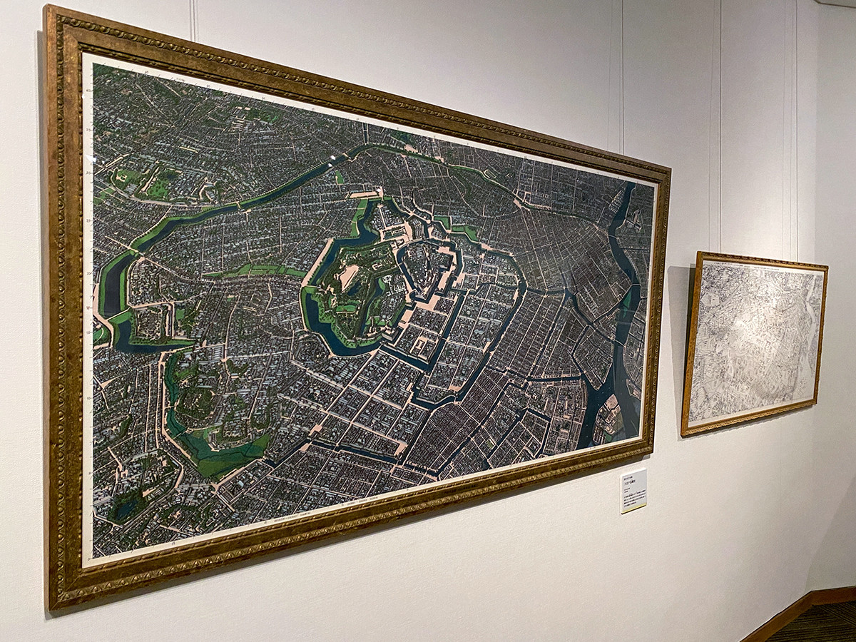 会場は6章構成で、1章「千代田のまちのなりたち」から。俯瞰図や江戸図で、江戸のまちづくりの変遷が紹介されます。