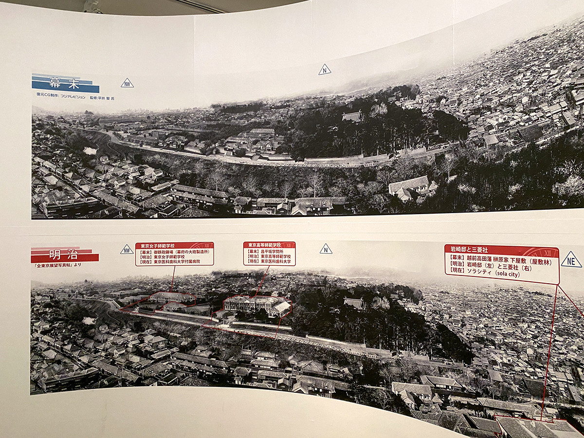 3章は「文明開化東京」。ここには360゜パノラマドームが設置され、明治20年代のニコライ堂展望写真と幕末の風景を比較します。