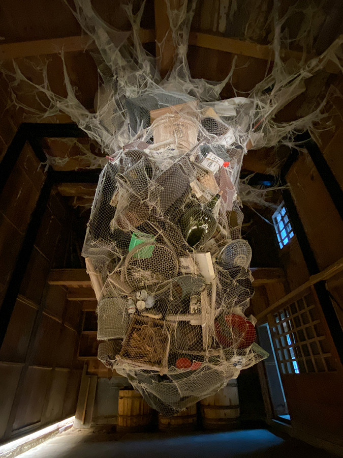 作者の佐藤貢は、自分のところにたどり着いた「漂流物」を用いて作品制作をしている、との事。この作品のように、与えられた空間を上手く利用した作品が多いのは、この芸術祭の特徴といえます。