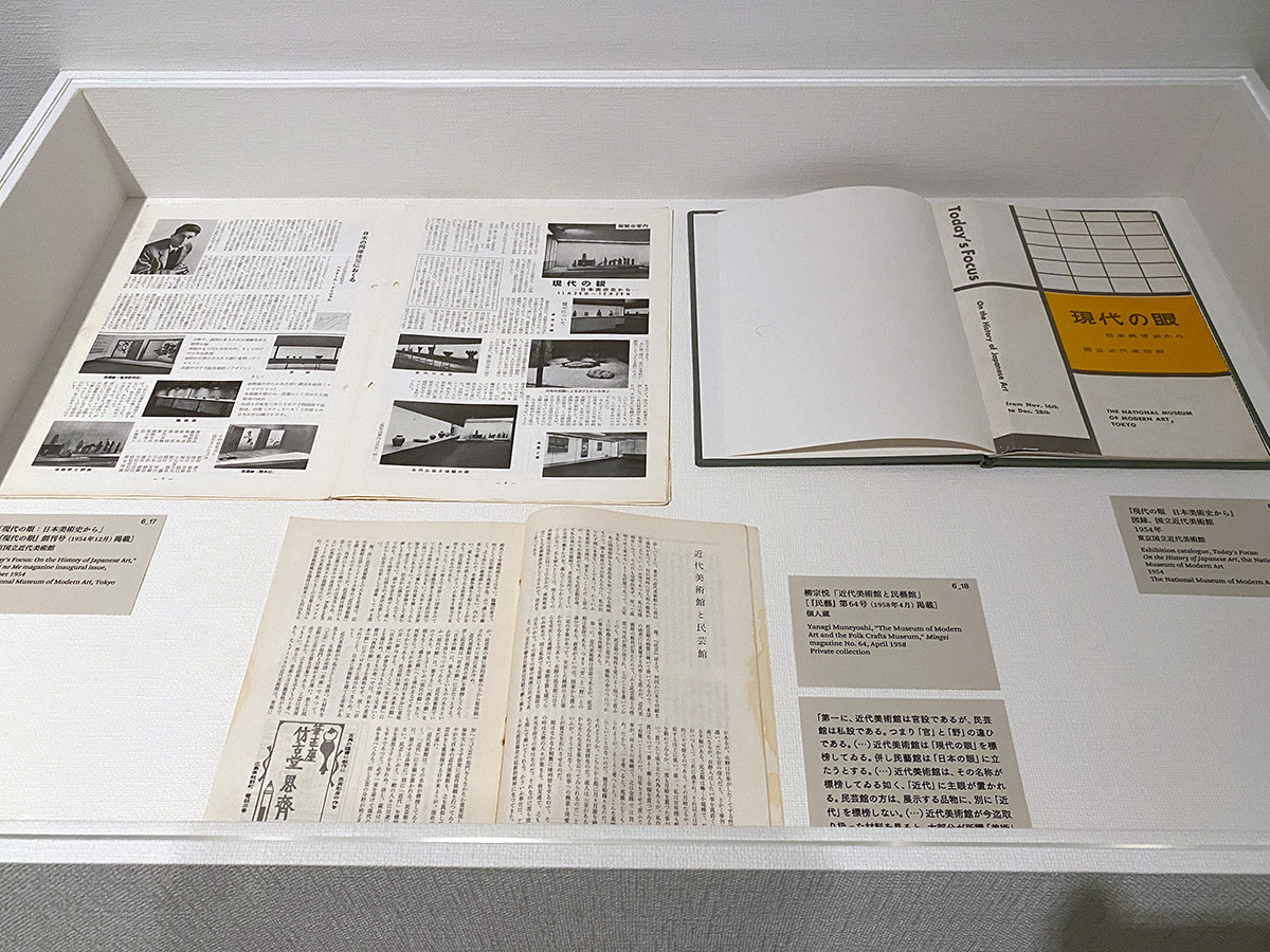 「国立」「近代」「美術」を反転させた「在野」「非近代」「工芸」が民藝館であり、「現代の眼」を標榜する東京国立近代美術館に対し、民藝館は「日本の眼」に立つ、という論調でした。