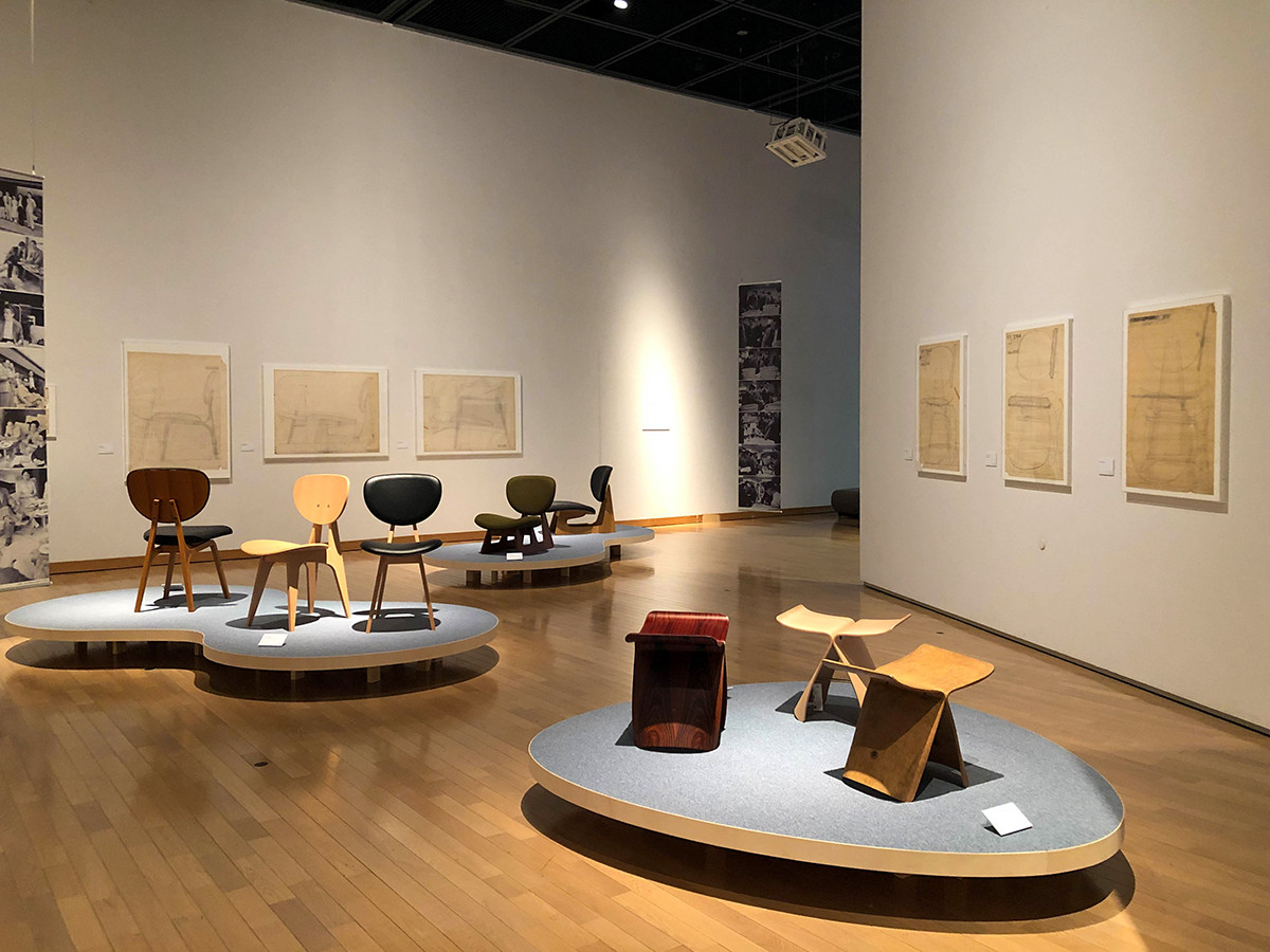 日本のデザインを世界に発信した、時代を代表するデザインコミッティーの人々の作品を一堂に会する貴重な展覧会。岡本太郎や柳宗理の椅子に腰かけながら鑑賞に浸ることもできます。