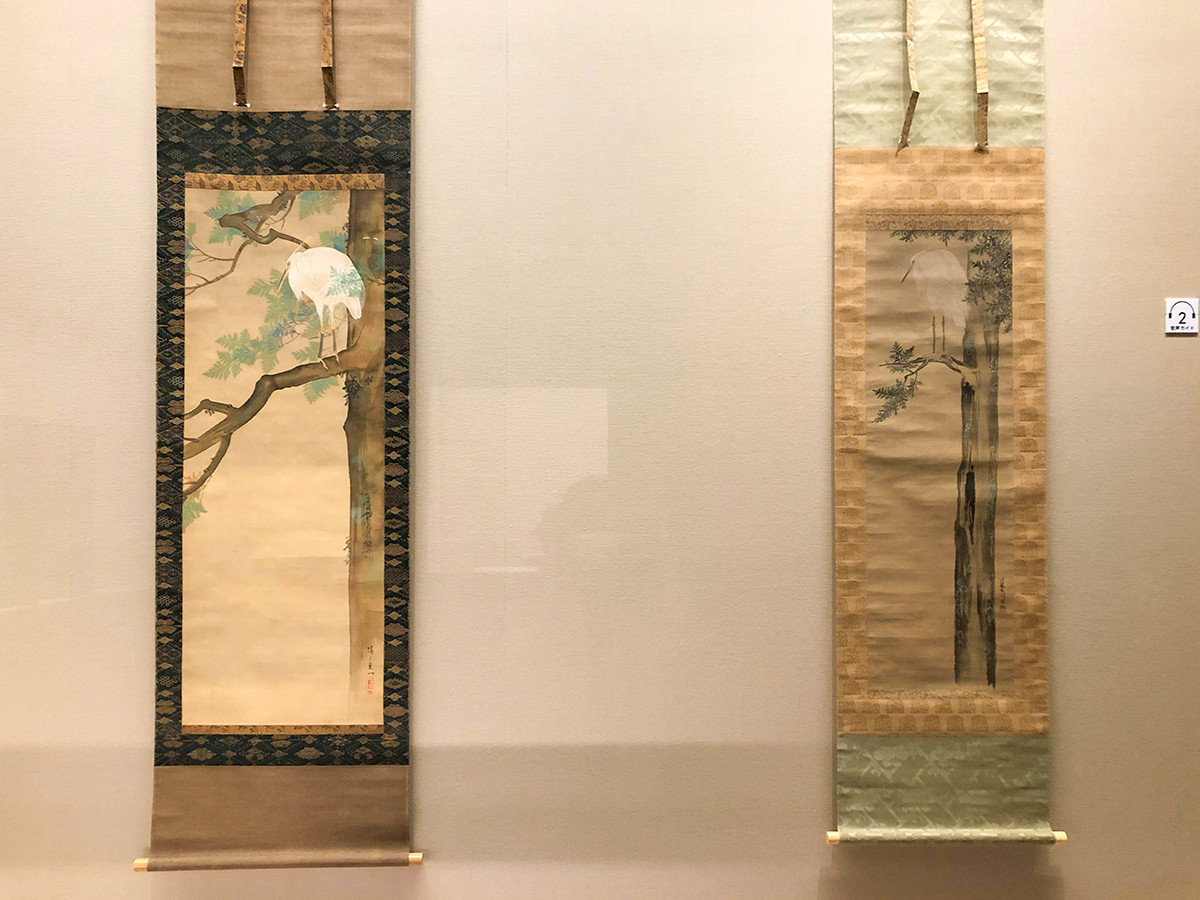 (左から)《檜に白鷺図》山本光一筆 江戸~明治時代 19世紀 千葉市美術館蔵 / 《檜に白鷺図》 狩野常信筆 江戸時代 18世紀 個人蔵