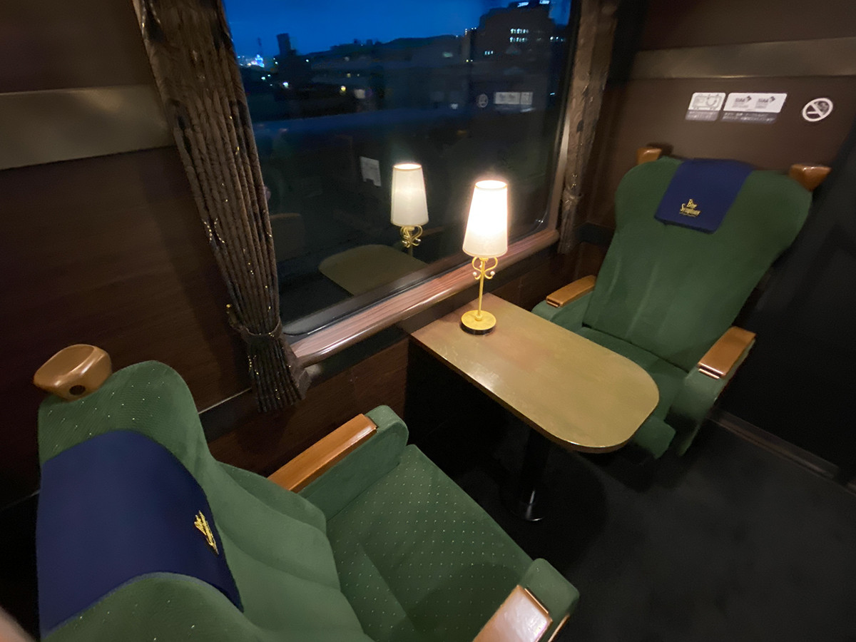 ゴージャスな車両ですが、特急料金にわずか210円プラスするだけと、超オススメです。売り切れ必須なので、事前予約をお忘れなく(乗車の2週間前からネットで予約できます)。