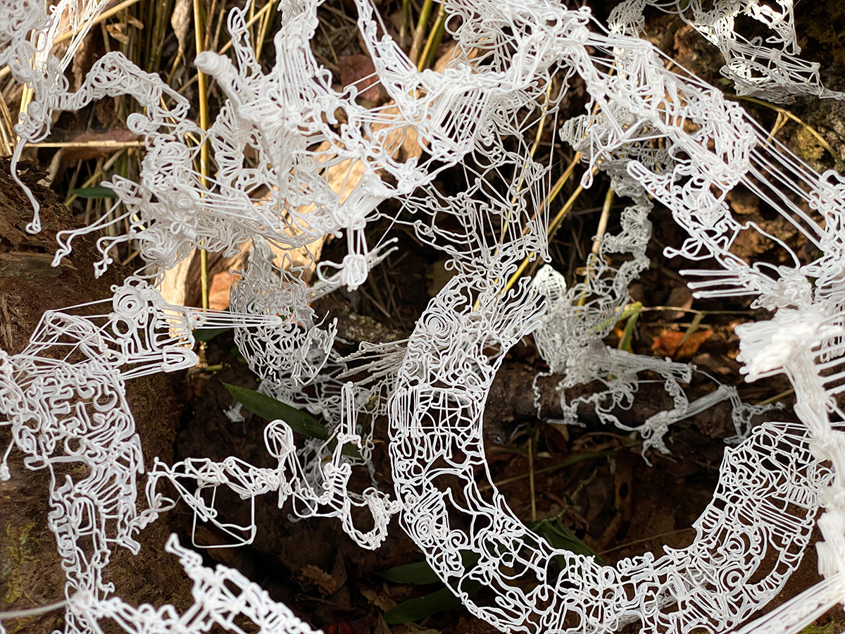 白や黒の糸状の樹脂?でつくられた作品は、広い公園内での繊細な表現ですが、印象に残りました。