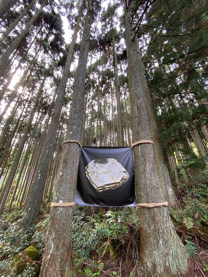 コースの各所に掲げられた写真作品は、石ではなく、曽爾村の地面に落ちている砂粒を顕微鏡で撮影したもの。