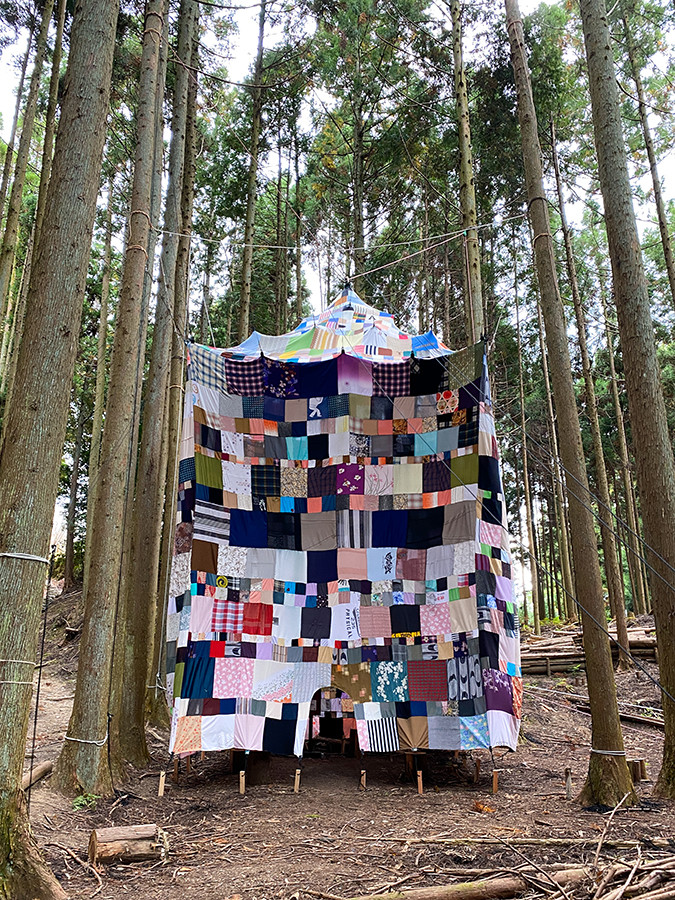 すぐ近くにあるこちらは、吉野、天川、曽爾で集めた古着をパッチワークにしたもの。