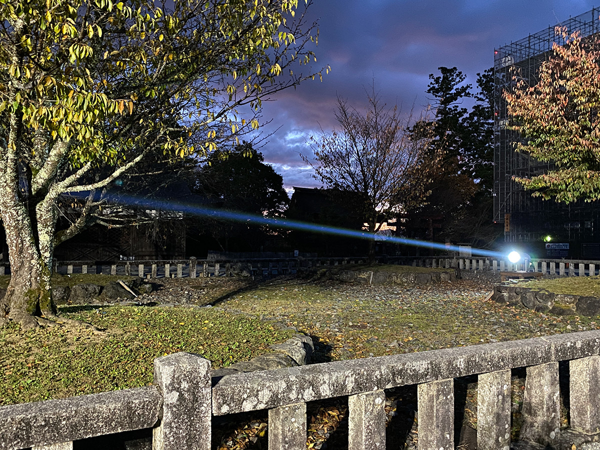 地域固有の軸となる歴史や事象、伝説などを光線によって可視化させる『JIKU』シリーズで、今回は3つのエリアから、全て大峰山に向けて照射しています。