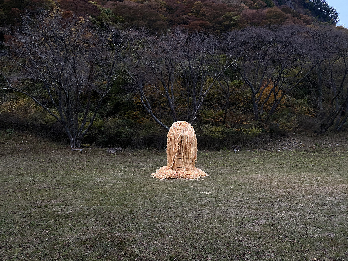 カンナ屑でつくられた大きな作品も、屛風谷公苑にある作品。