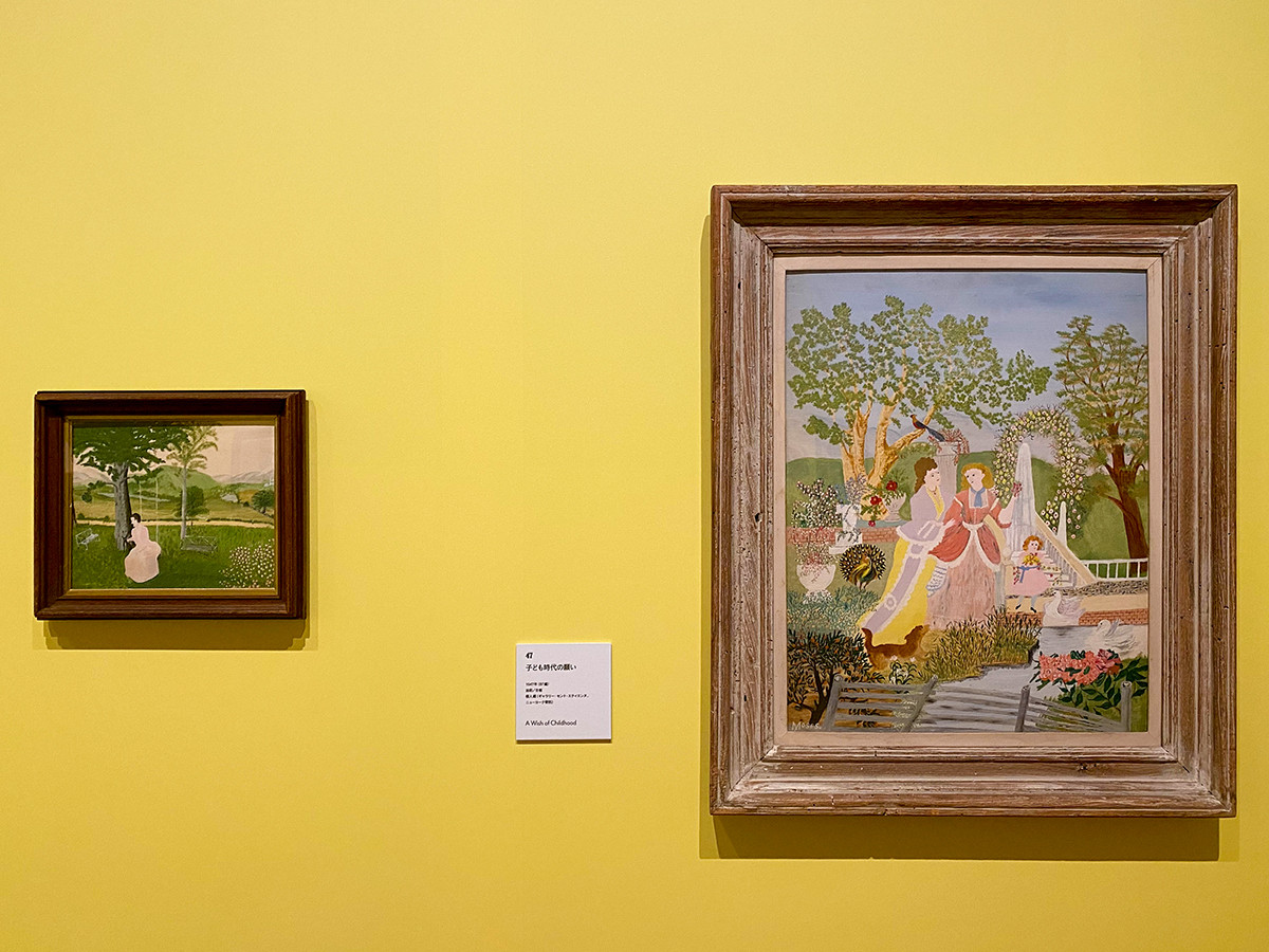 (左から)《家の古いブランコ》1940年(80歳) 個人蔵(ギャラリー・セント・エティエンヌ、ニューヨーク寄託) / 《子ども時代の願い》1947年(87歳) 個人蔵(ギャラリー・セント・エティエンヌ、ニューヨーク寄託)