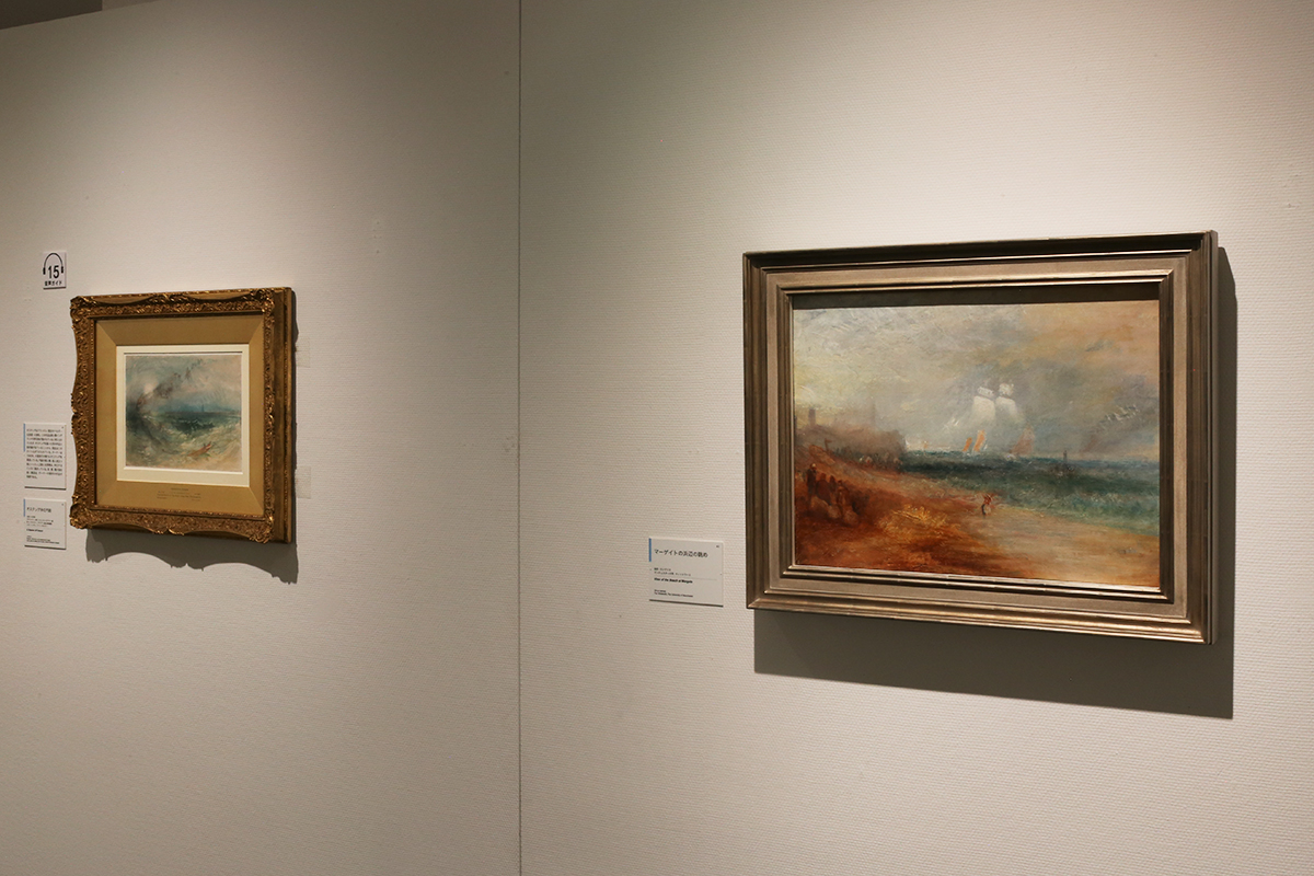 (左から)《オステンデ沖の汽船》1840-41年頃 ポート・サンライト、リヴァプール国立美術館群、レディ・リーヴァー・アート・ギャラリー / 《マーゲイトの浜辺の眺め》マンチェスター大学、ウィットワース