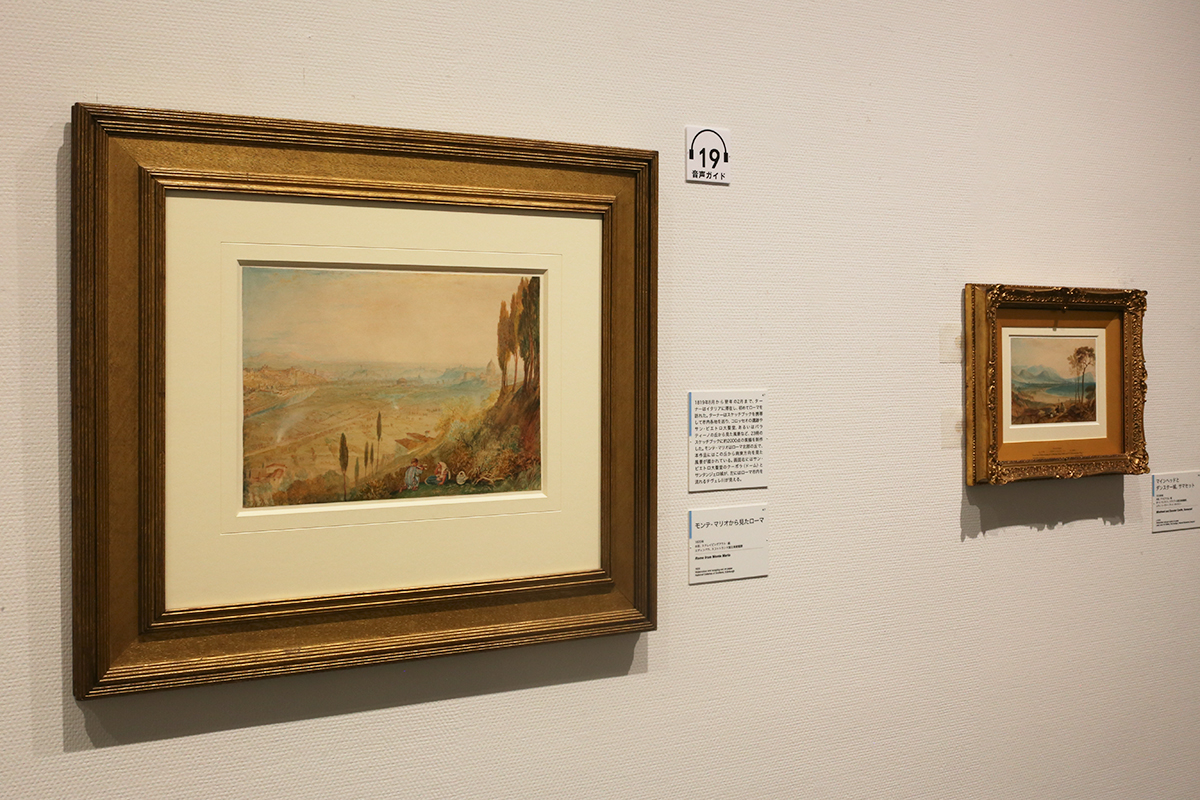 (左から)《モンテ・マリオから見たローマ》1820年 エディンバラ、スコットランド国立美術館群 / 《マインヘッドとダンスター城、サマセット》1818年頃 ポート・サンライト、リヴァプール国立美術館群、レディ・リーヴァー・アート・ギャラリー