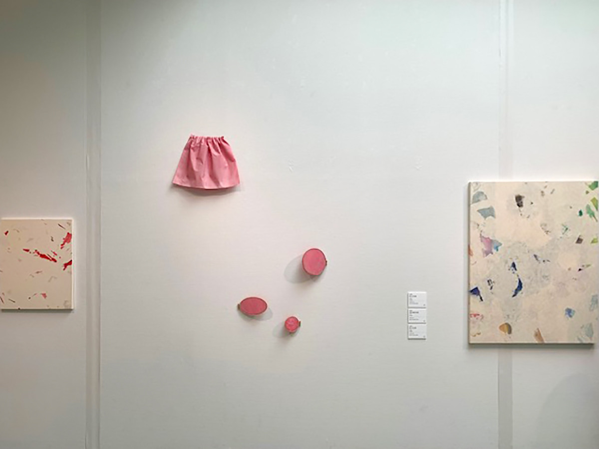 油彩の技法を英語では「oil on canvas」と表記します。作品の本体は、キャンバス上(on canvas)の絵の具の部分ですが、彼女は、本体を布で覆い隠し(in the cloth)、わずかな凹凸で、幽霊(Ghost)のように存在をほのめかしています。絵画でも彫刻でもない、新しいタイプの作品の出現を主張しているようです。彼女は、「VOCA展2022」にも出品するので、次の展開が楽しみです。