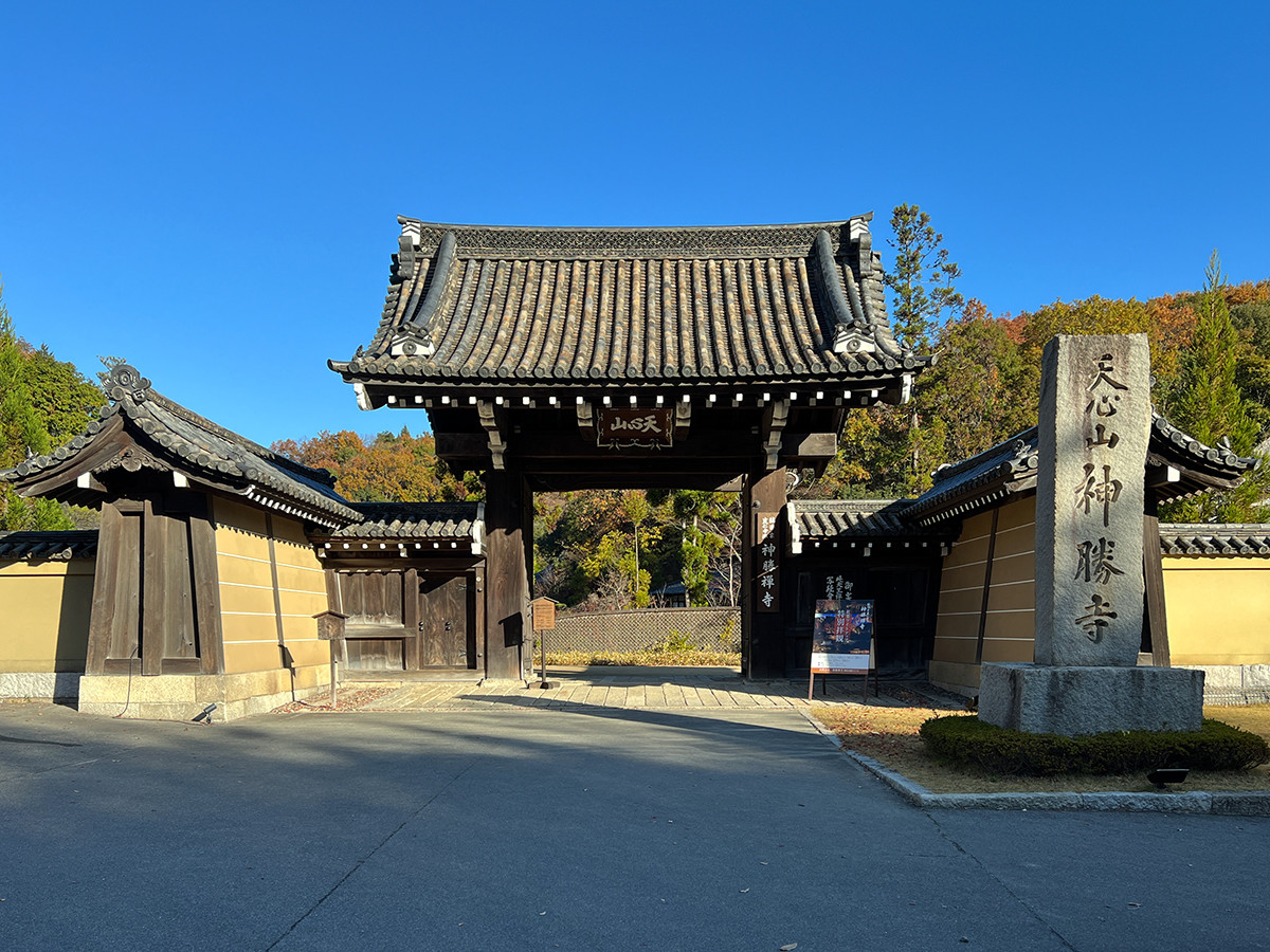 境内の一番奥まで進むと長い石段があり、上った先が神勝寺の本堂「無明院」です。