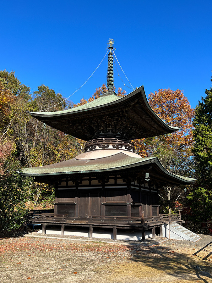 松堂を過ぎて左手の石段を上ると多宝塔へ。さらに進んで吊り橋を渡ると、お目当ての《洸庭》が姿を現します。