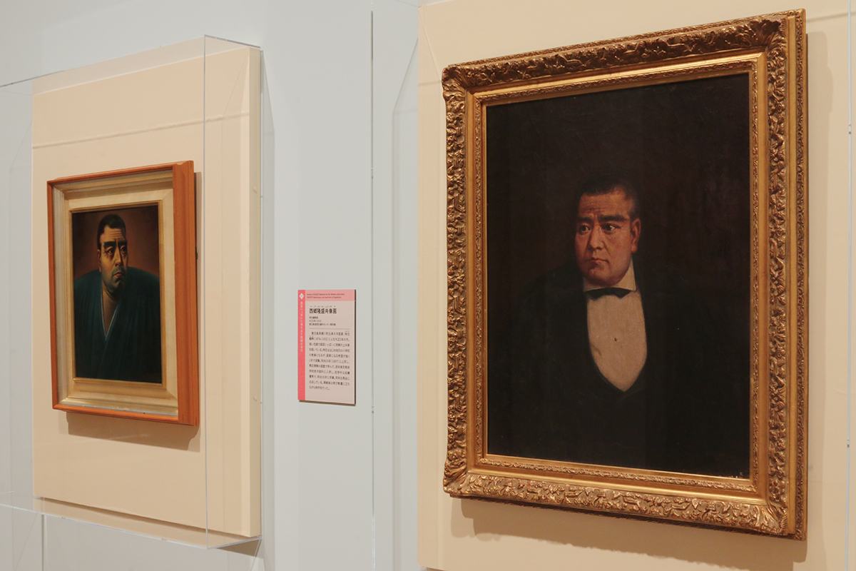 (左から)《西郷隆盛肖像画》時任鵰熊画 鹿児島県歴史資料センター黎明館 / 《西郷隆盛肖像画》床次正精画 鹿児島県歴史資料センター黎明館