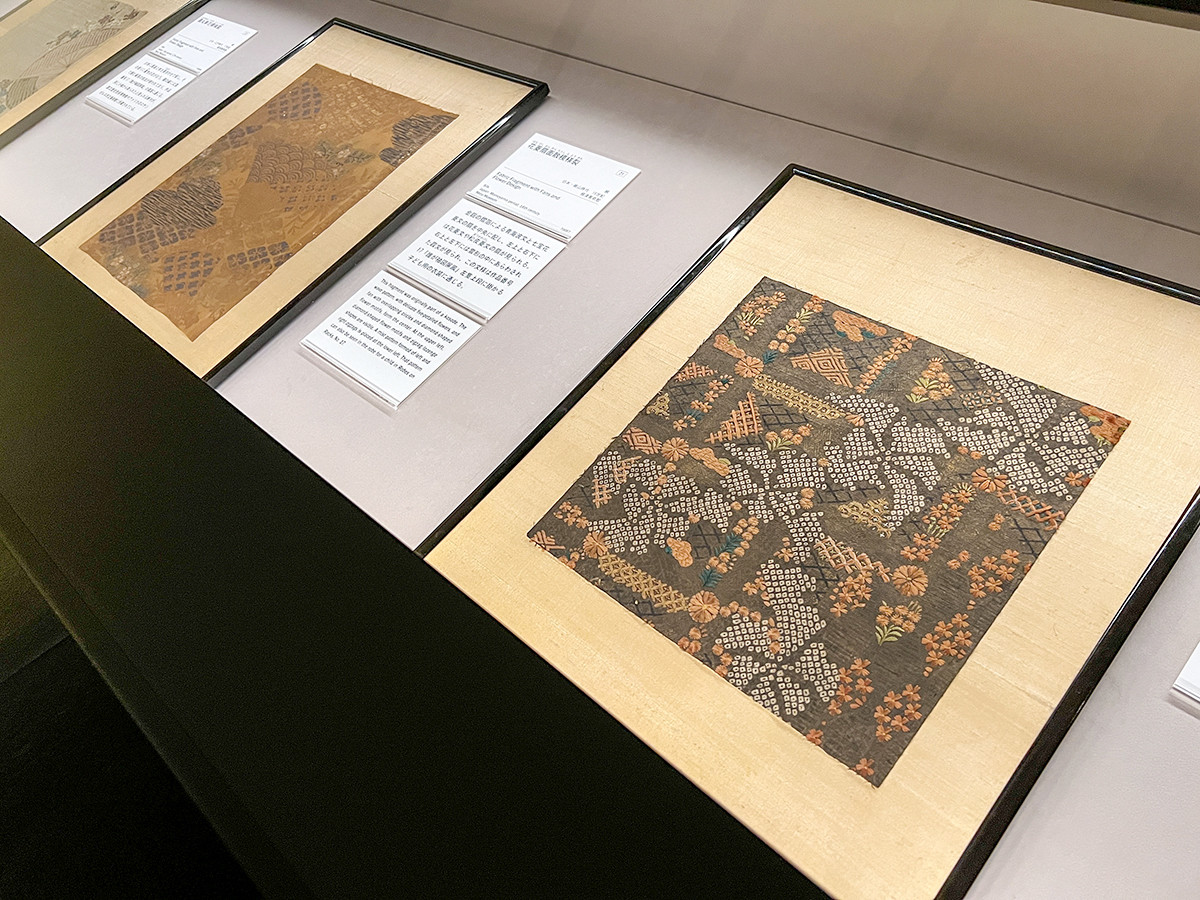 展覧会前半には染織品がずらり、新年の展覧会に相応しい華やかな会場風景