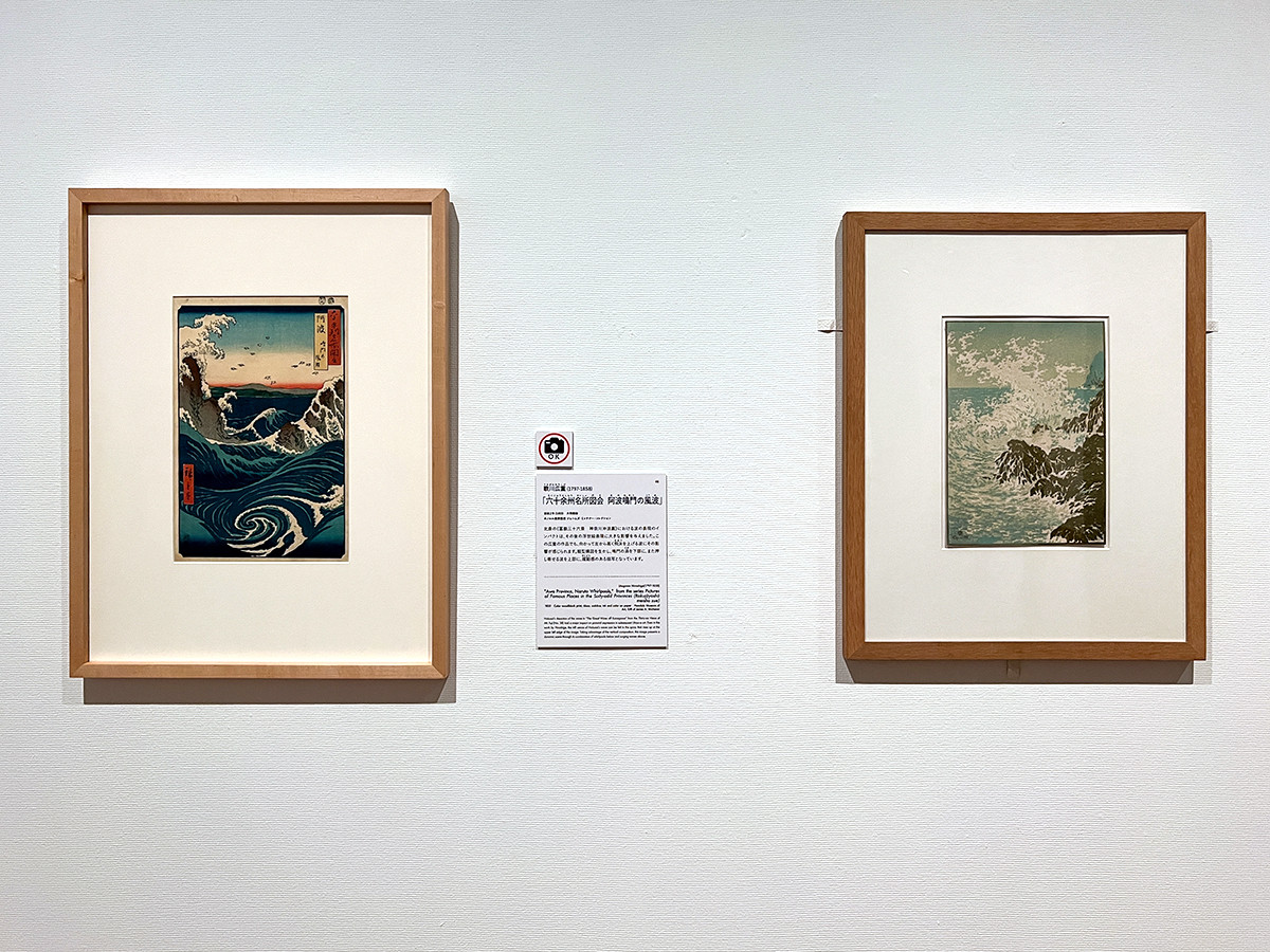 (左から)歌川広重「六十余州名所図会 阿波鳴門の風波」安政2年(1855)ホノルル美術館 ジェームズ・ミッチナー・コレクション / ファリレーエフ、ヴァディム・ドミトリヴィッチ(1879-1950)《カプリ島、波浪》1911年 プーシキン美術館