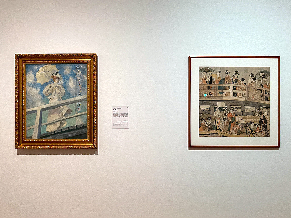 (左から)エリュー、ポール《白い婦人》1890年代初期 プーシキン美術館 / 喜多川歌麿《両国橋納涼》寛政7-8年(1795-96)頃 メトロポリタン美術館 ハーべマイヤー・コレクション