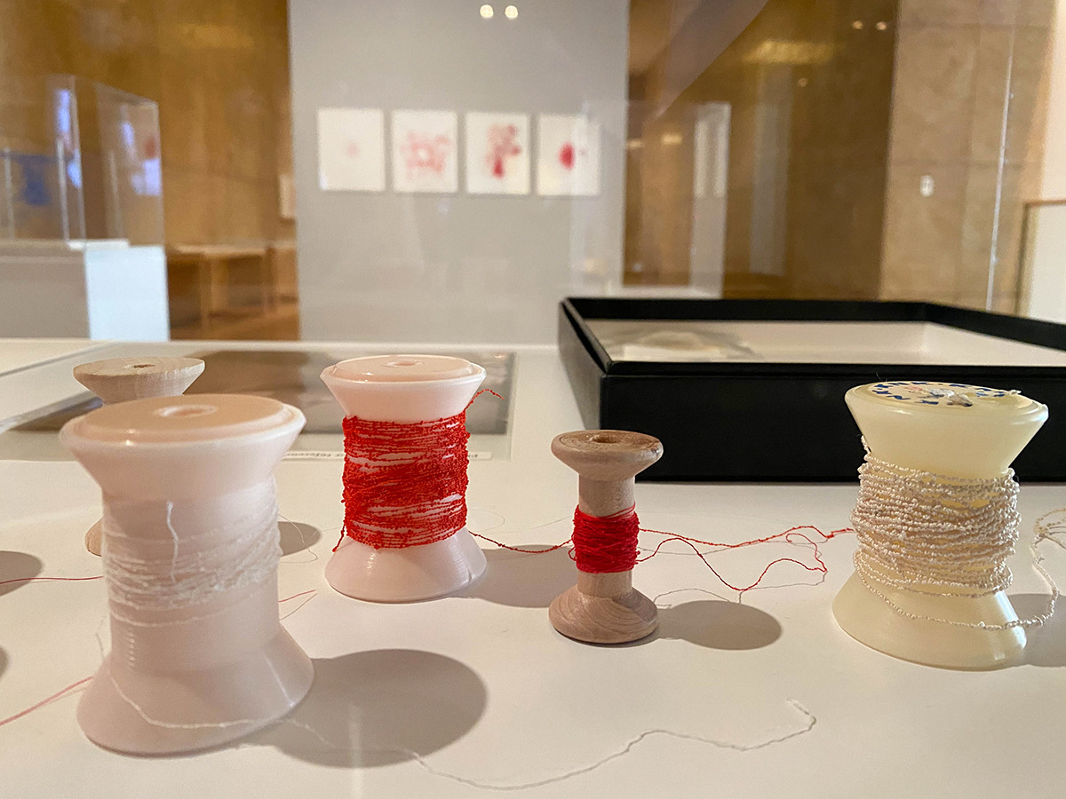 鑑賞後には、2階から目を凝らして館内を見渡してみてください。2000年に開館し22年目となる府中市美術館を記念し、22の結び目をつけた1本の糸が吊るされています。