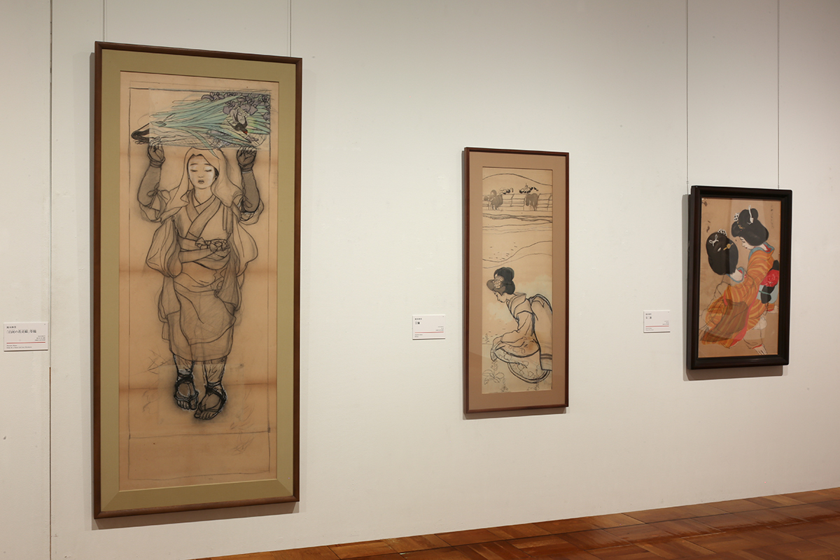 (左から)岡本神草《「白河の花売娘」草稿》大正5(1916)年 / 岡本神草《吉彌》大正5(1916)年 / 岡本神草《女二態》大正5(1916)年 すべて京都国立近代美術館