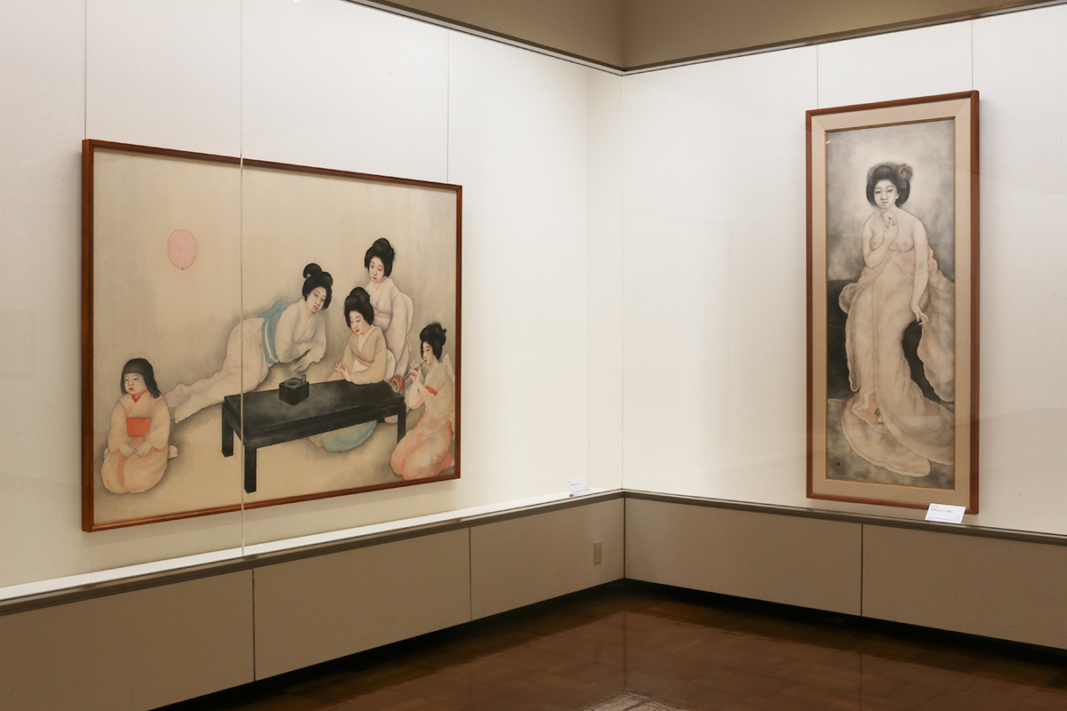 (左から)岡本神草《五女遊戯》(未完)大正13(1924)年 / 岡本神草《骨牌を持てる半裸女》大正12(1923)年 ともに京都国立近代美術館