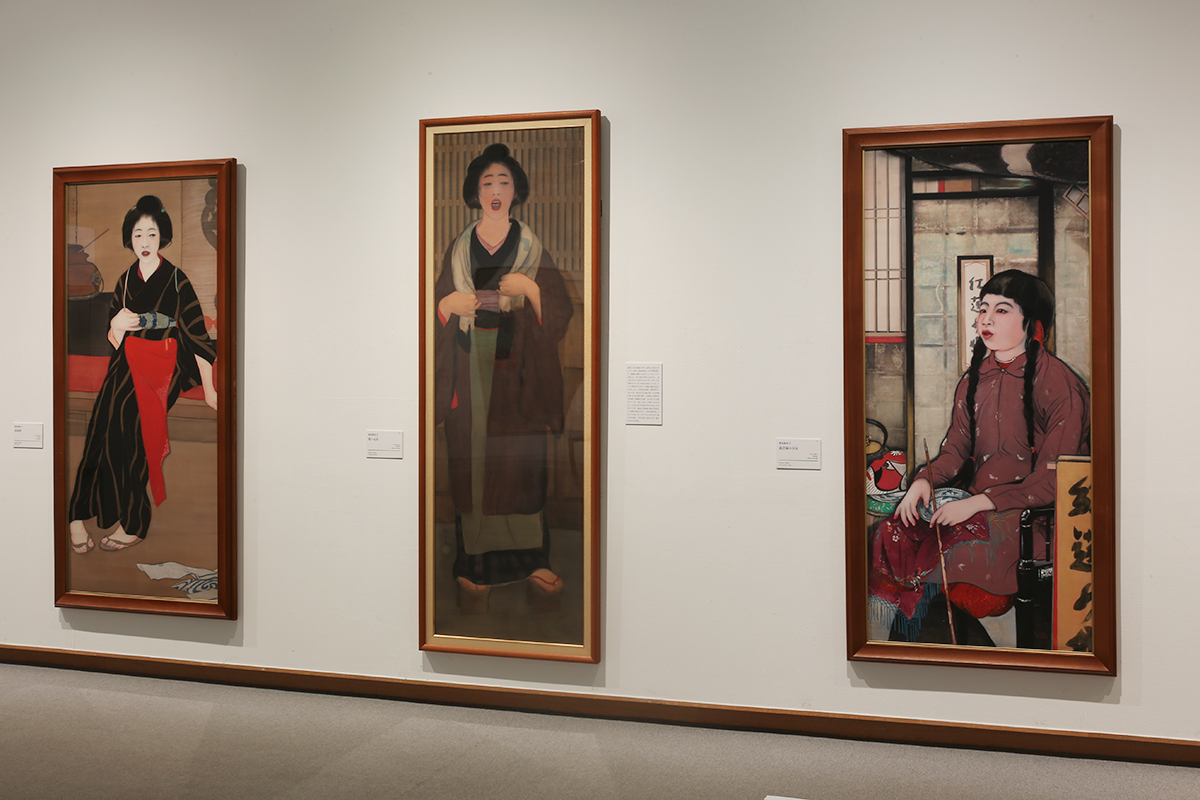 (左から)梶原緋佐子《赤前掛》大正5(1916)年頃 / 梶原緋佐子《唄へる女》大正8(1919)年頃 / 梶原緋佐子《曲芸師の少女》大正11(1922)年 すべて京都国立近代美術館