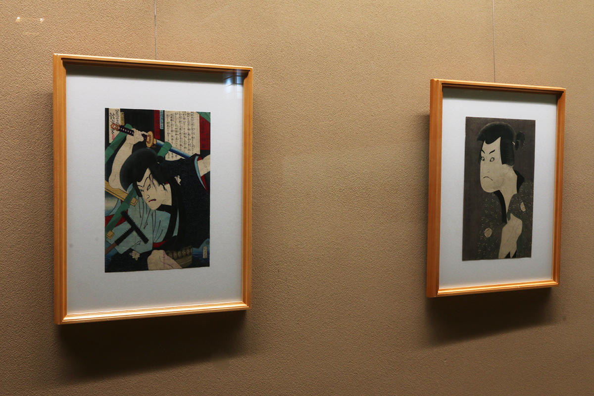 (左から)松雪斎銀光《講談一席読切 松林亭伯円 鼠小僧次郎吉 尾上菊五郎》 / 東洲斎写楽《三代目坂田半五郎の藤川水右衛門》